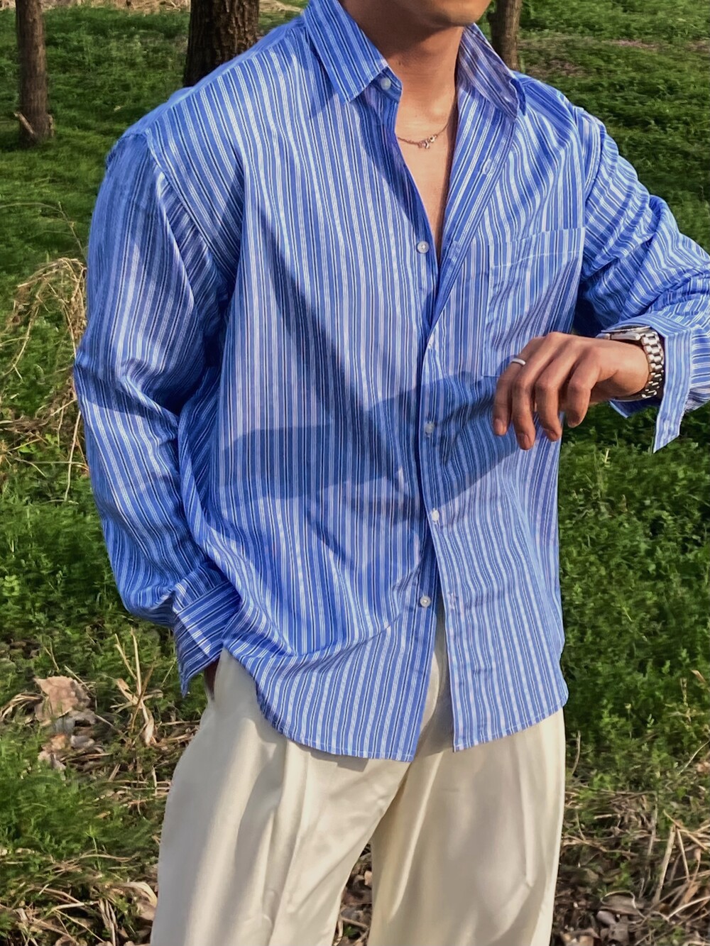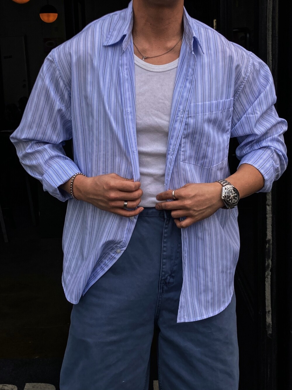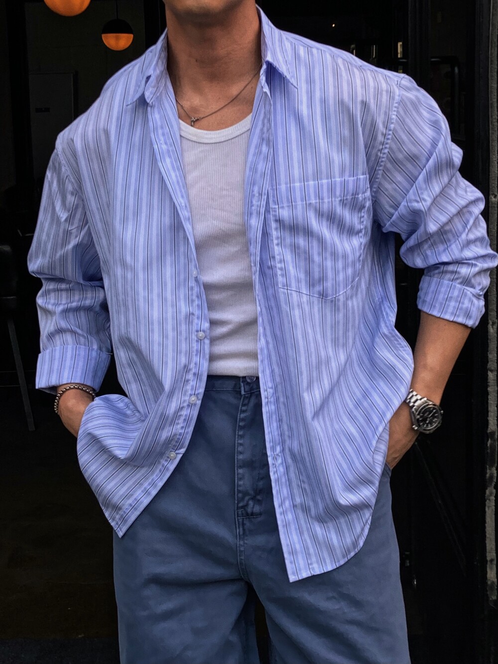 - 다양하게 활용하기 좋은 세로 스트라이프 셔츠