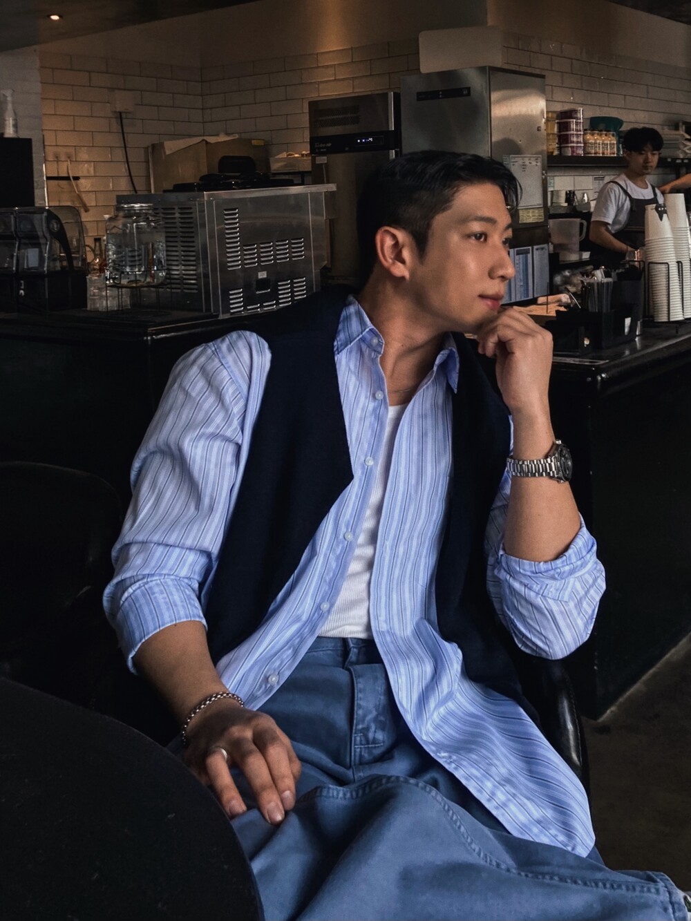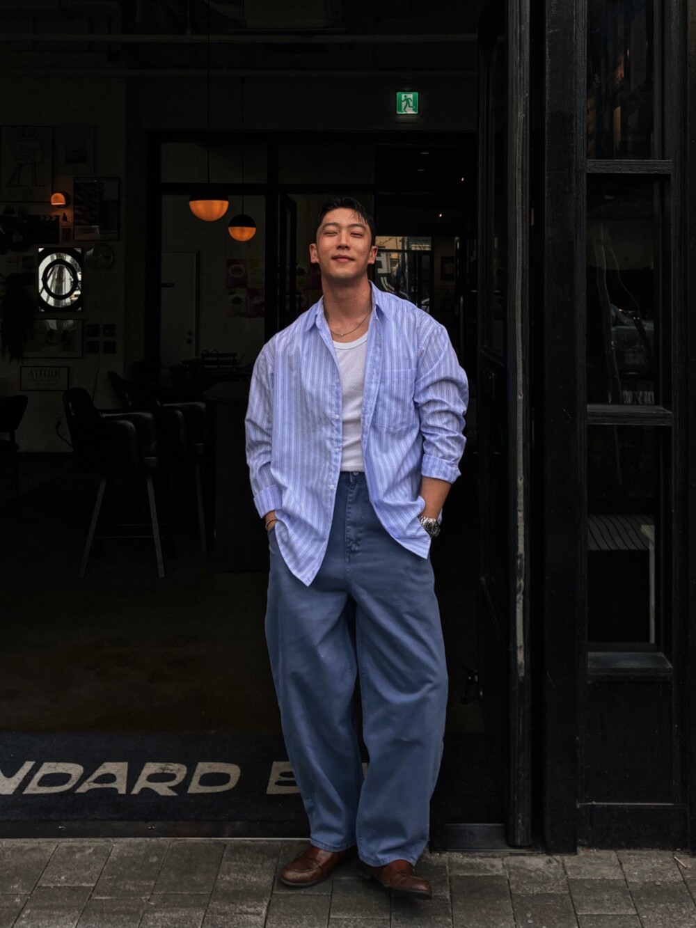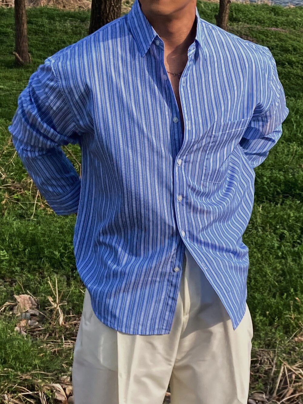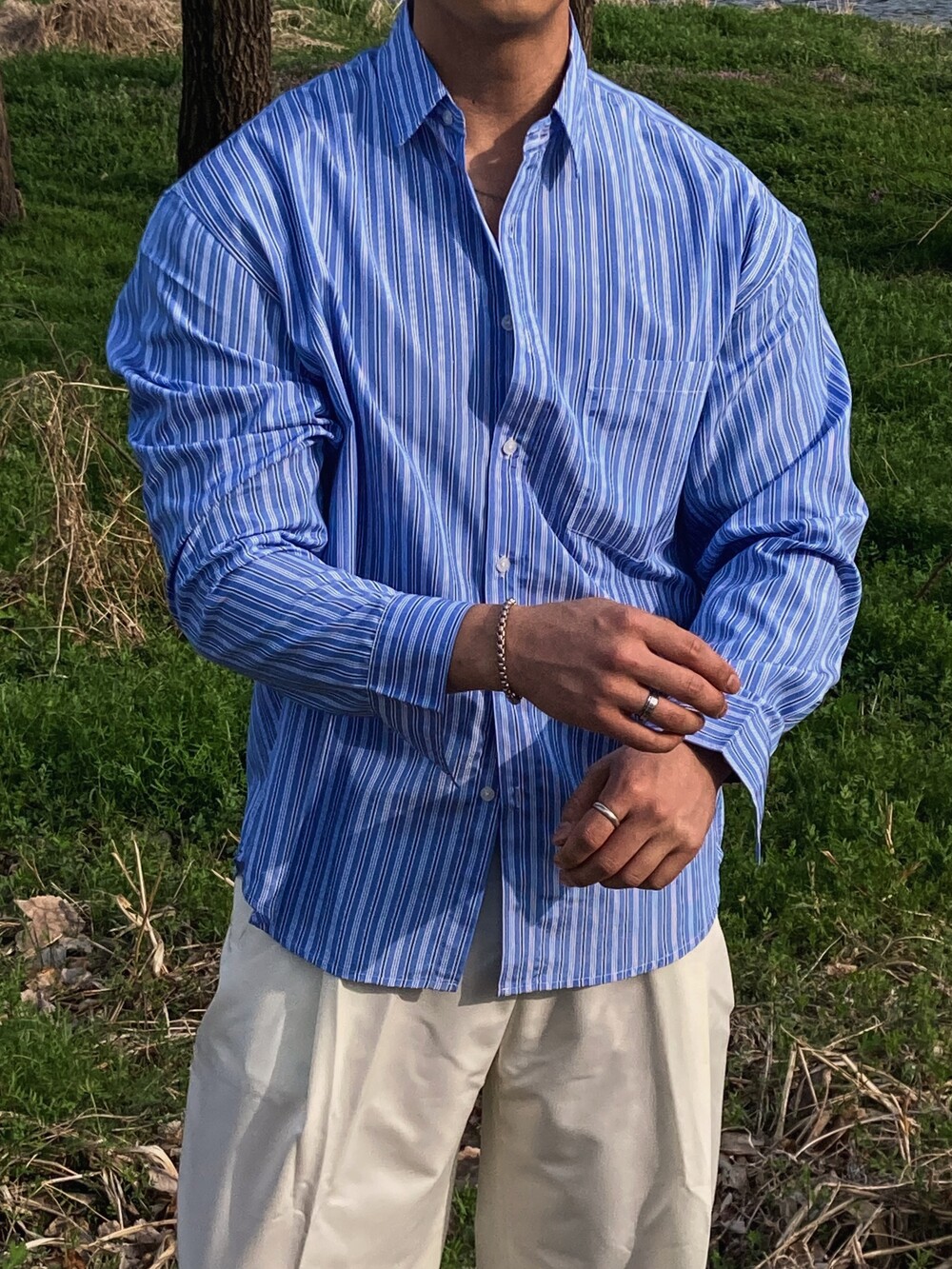 - 다양하게 활용하기 좋은 세로 스트라이프 셔츠