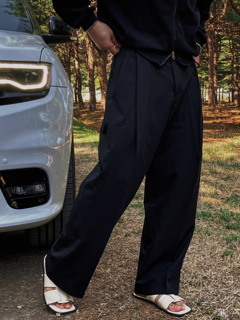 - 핀턱 포인트로 배바지했을때의 고급스러움