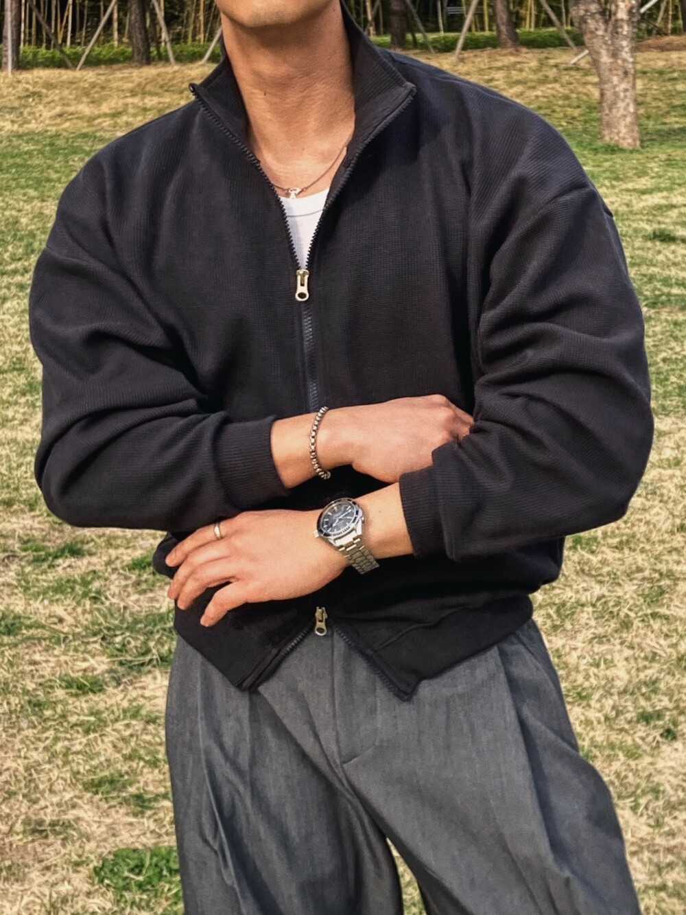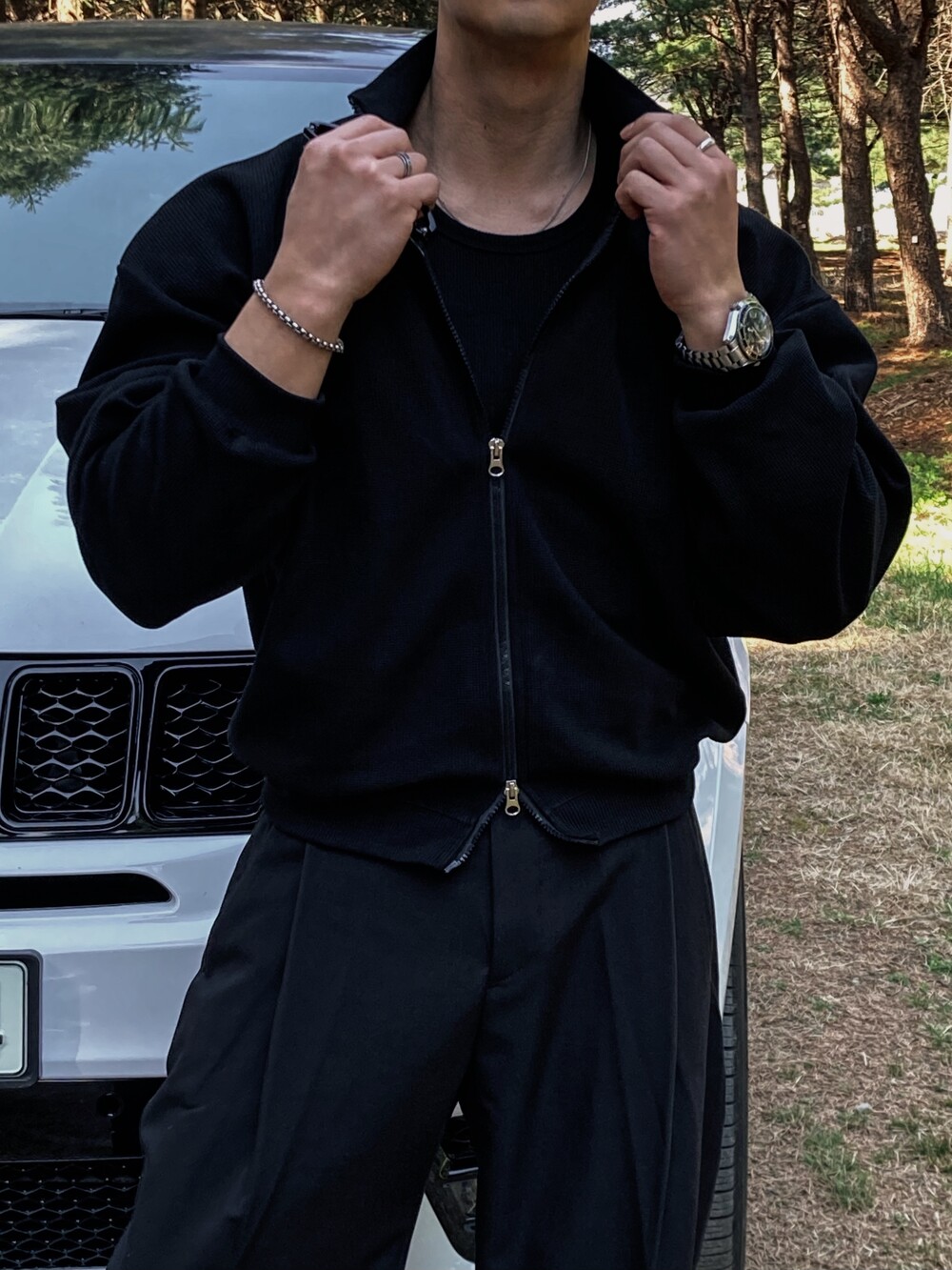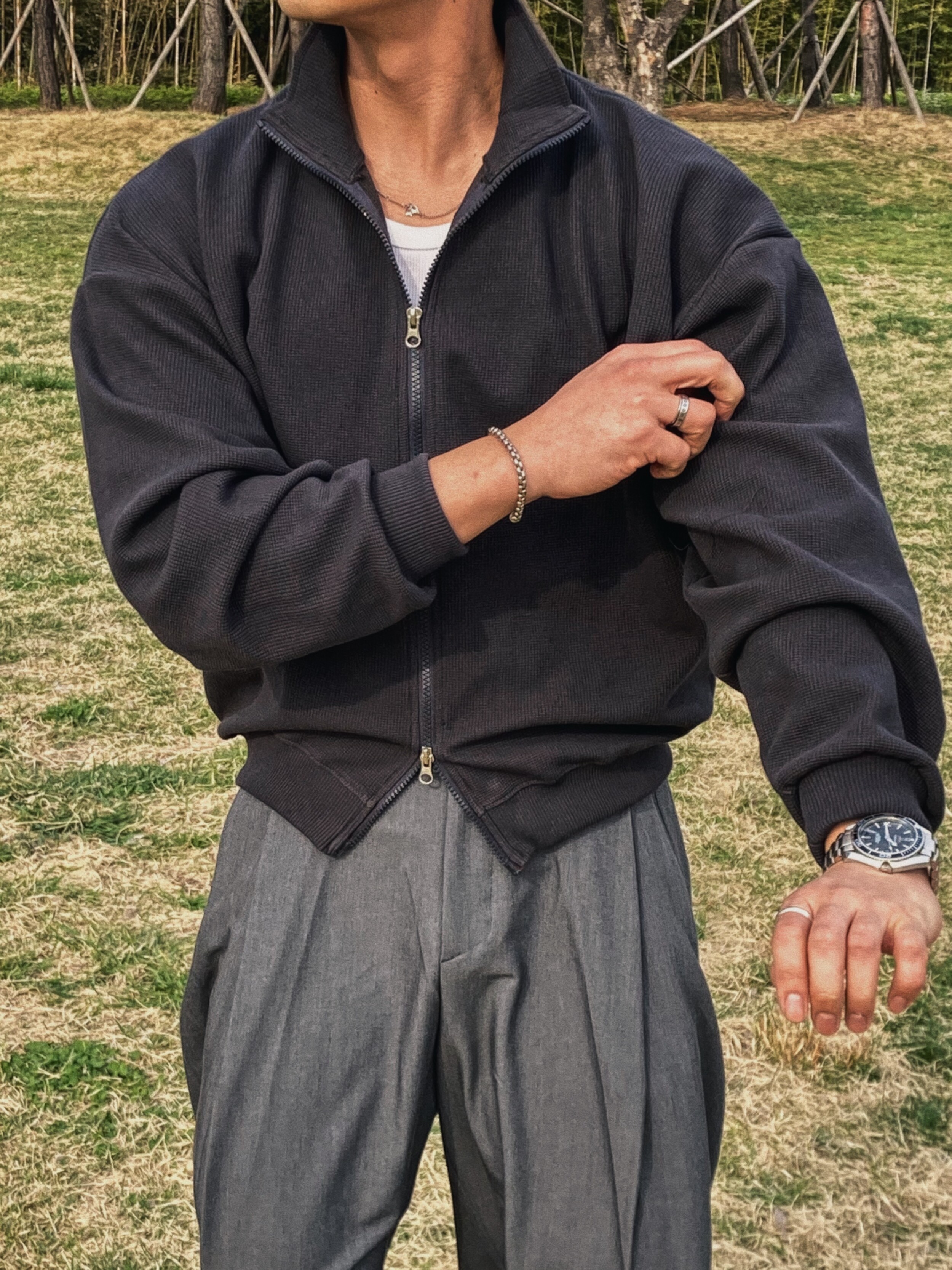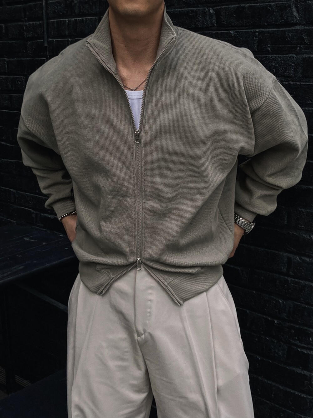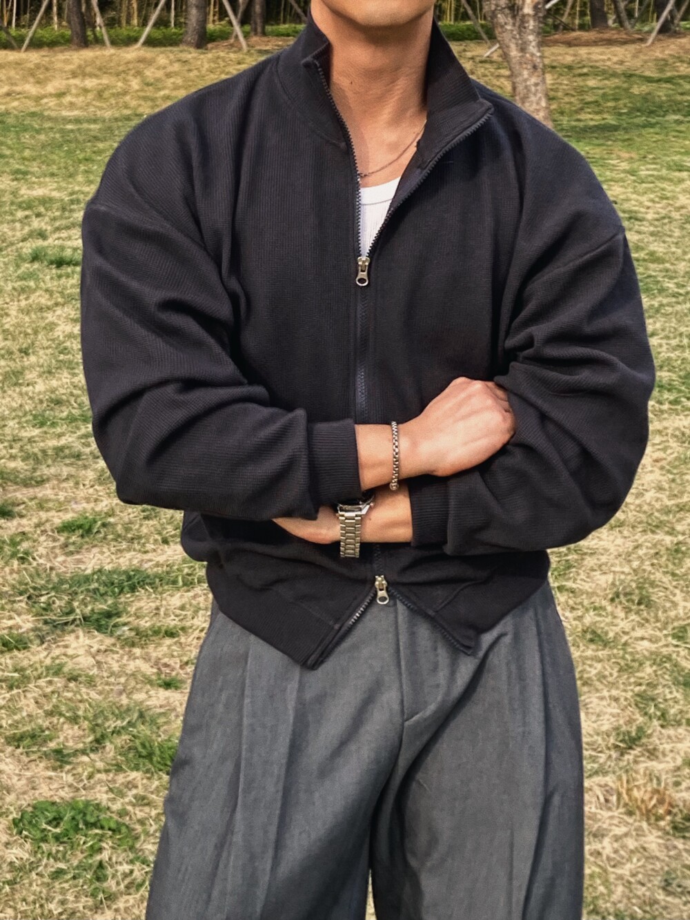- 와플 원단의 고급스러운 심플한 집업 자켓