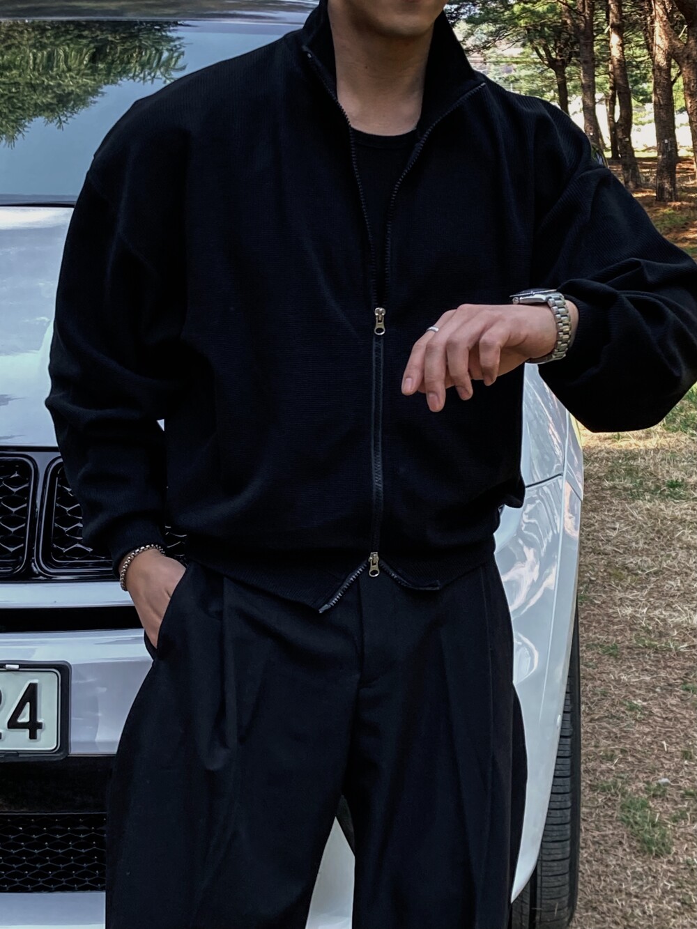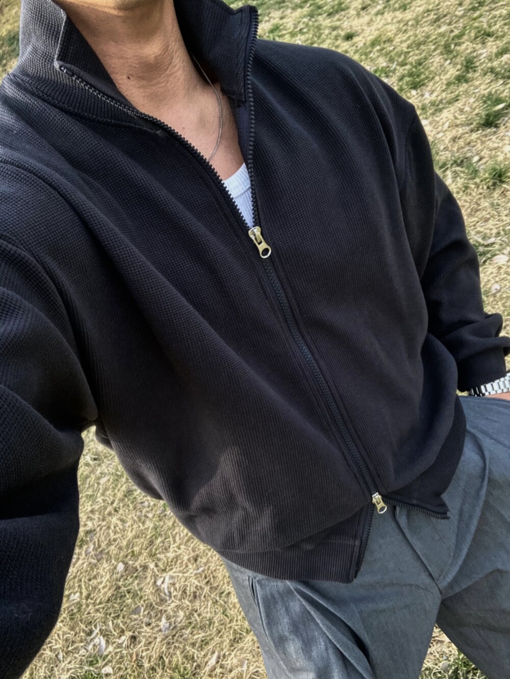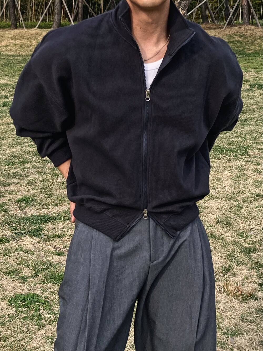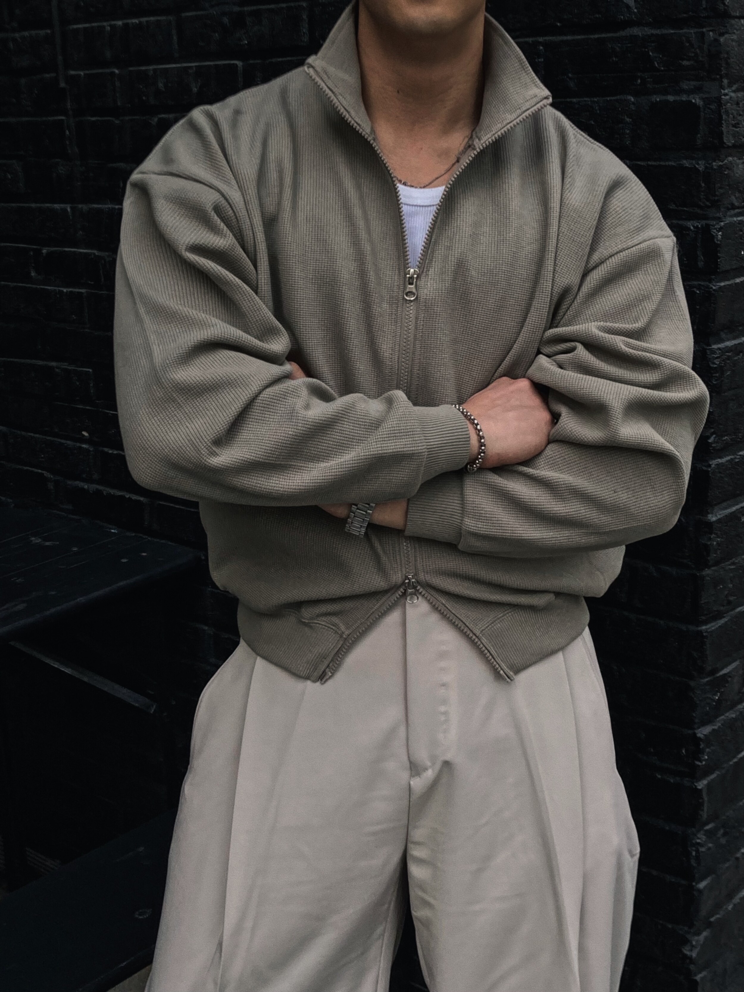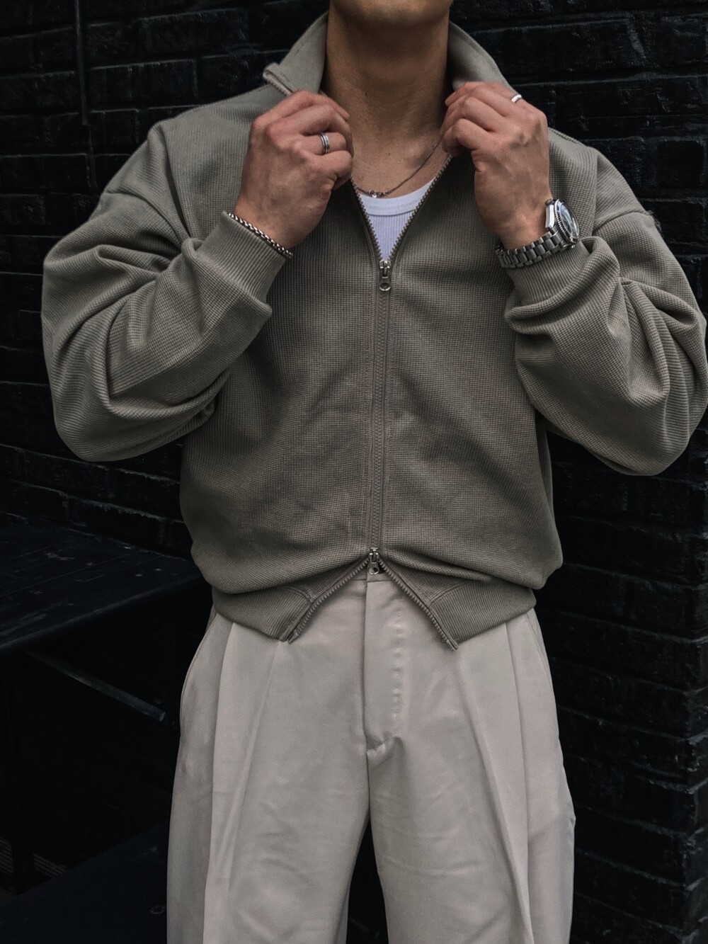 - 와플 원단의 고급스러운 심플한 집업 자켓