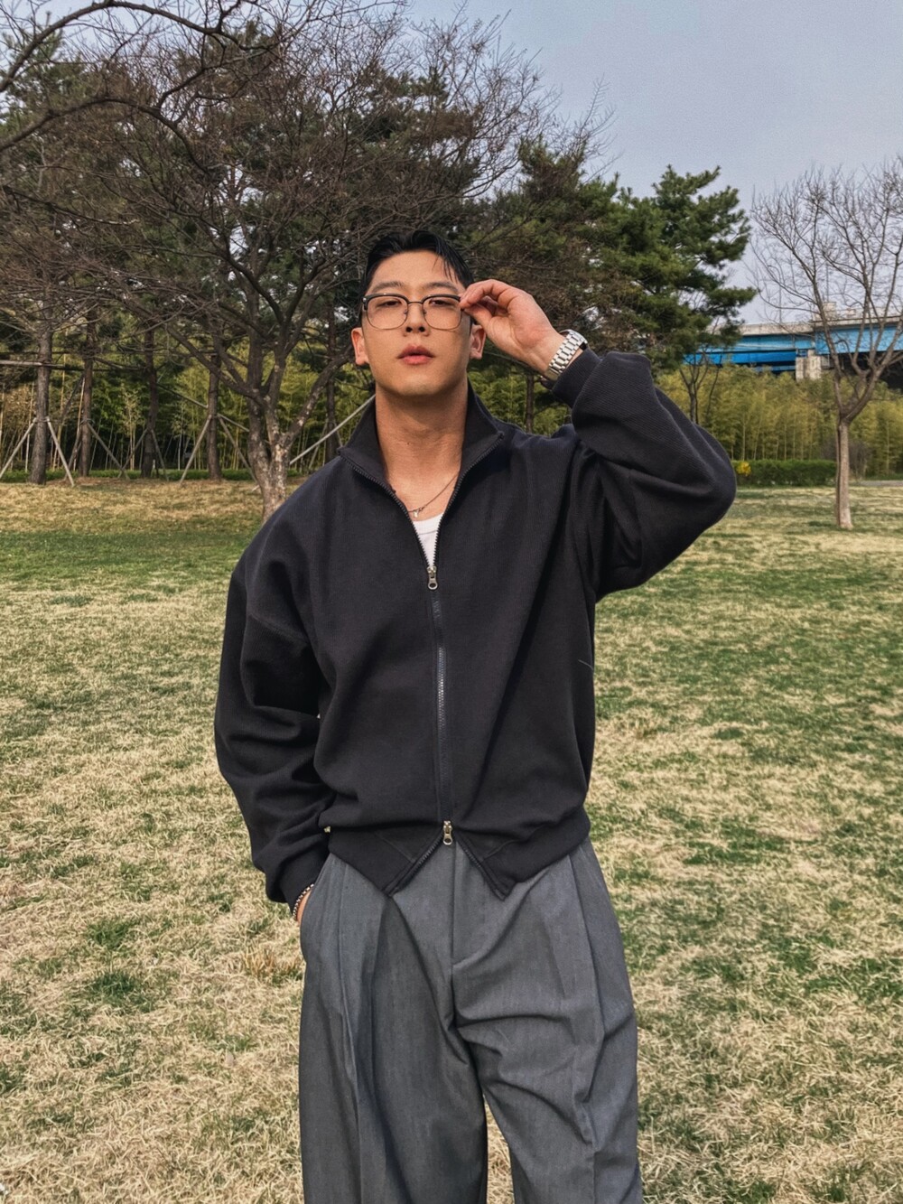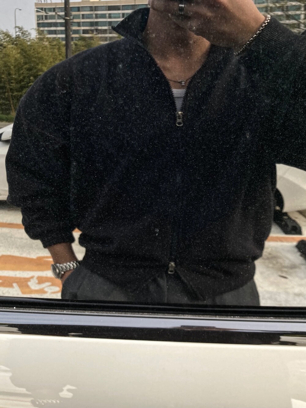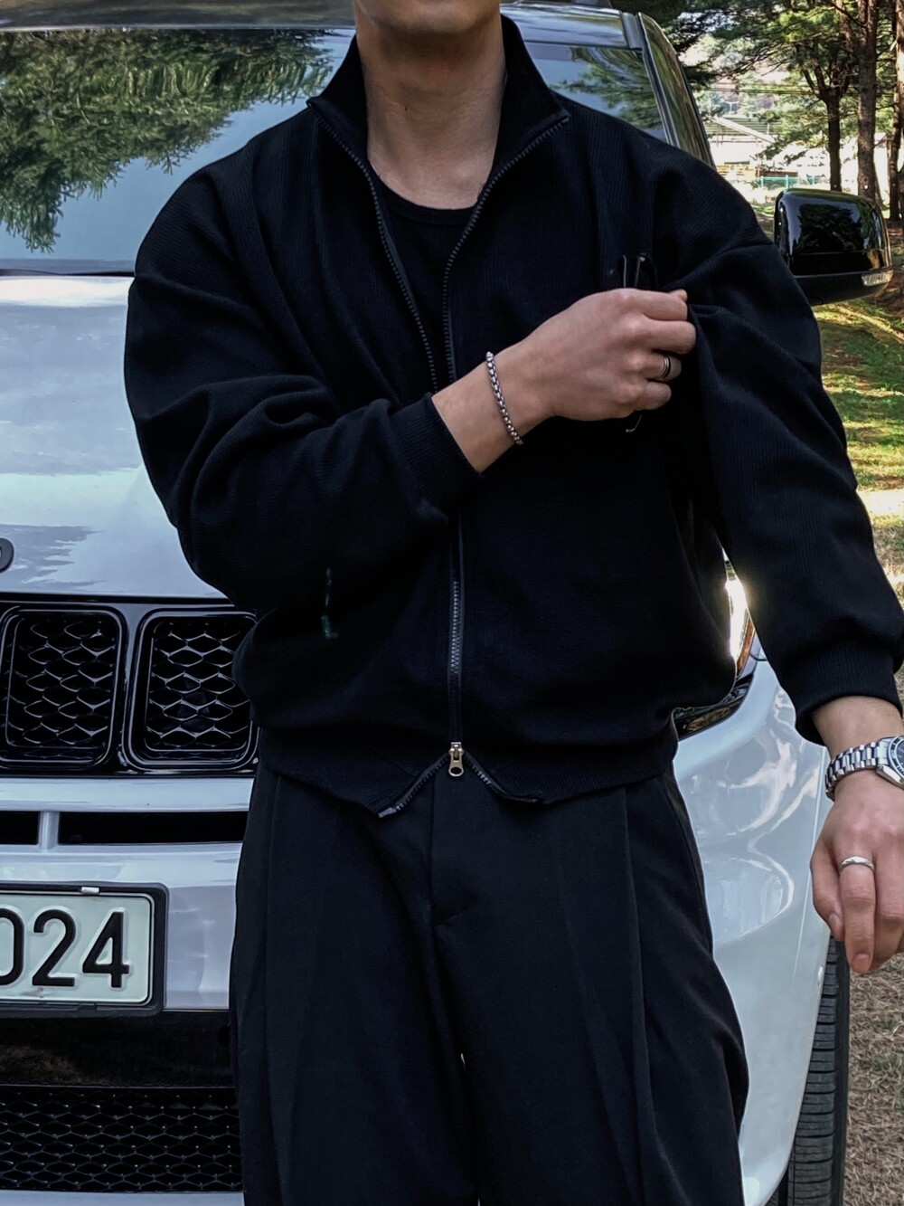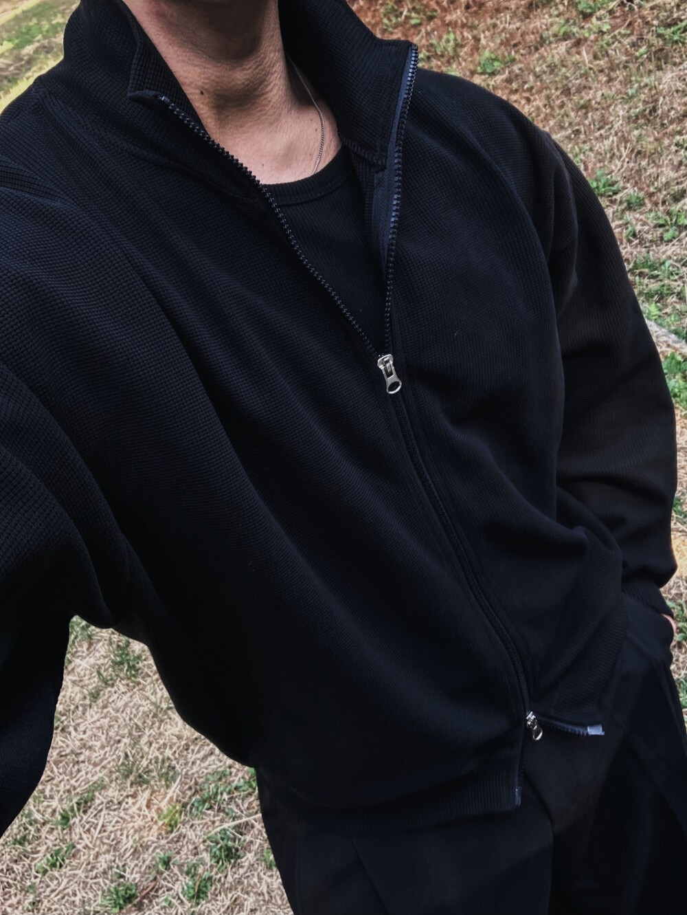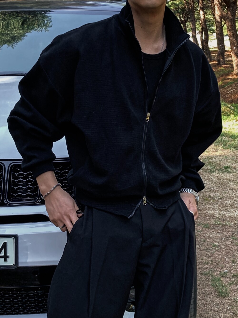 - 와플 원단의 고급스러운 심플한 집업 자켓