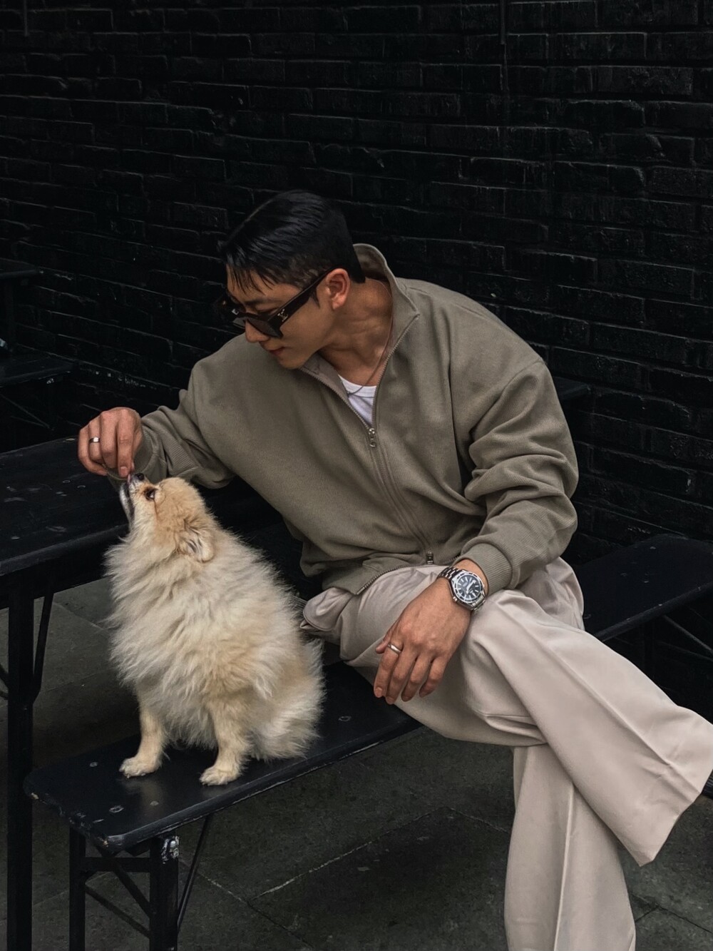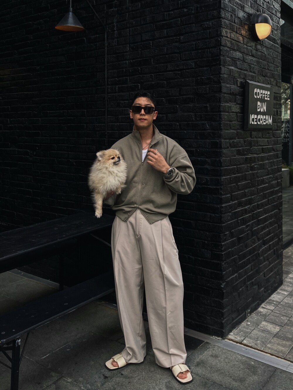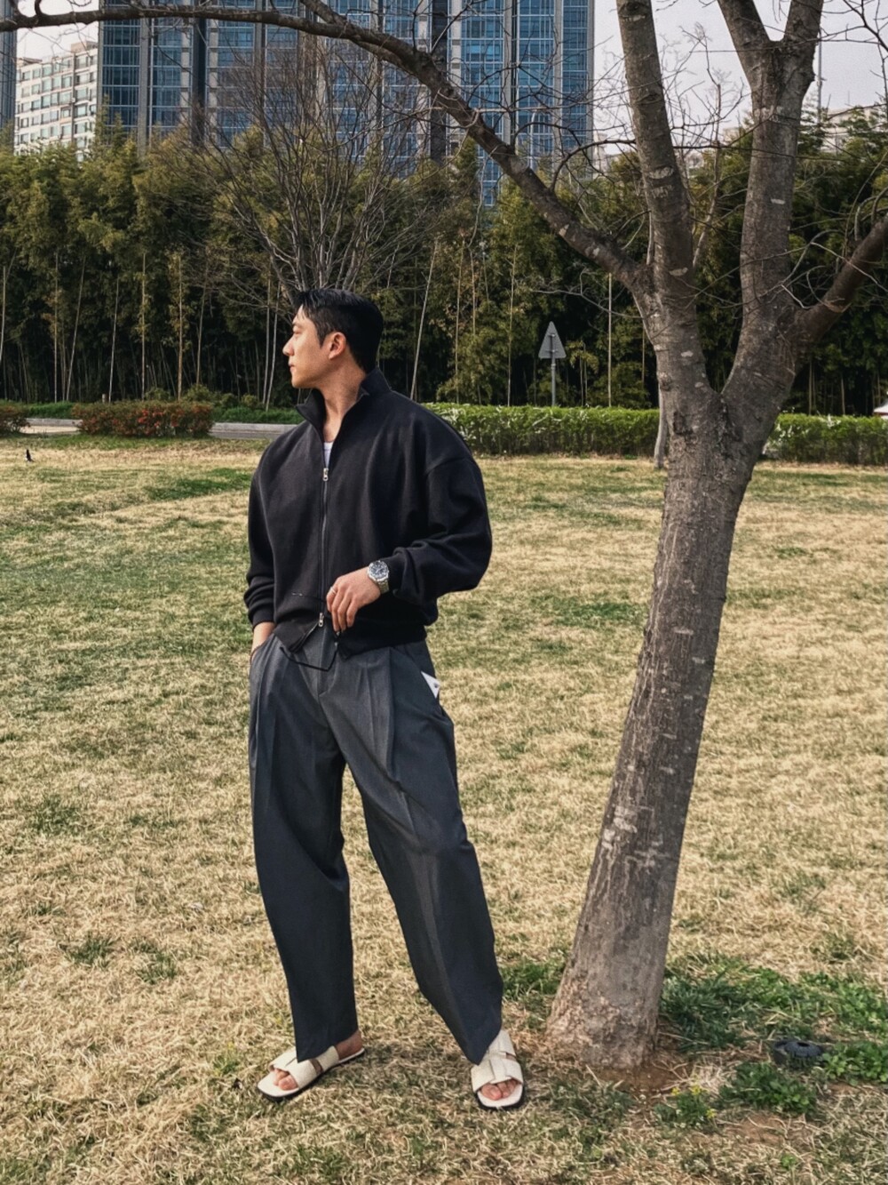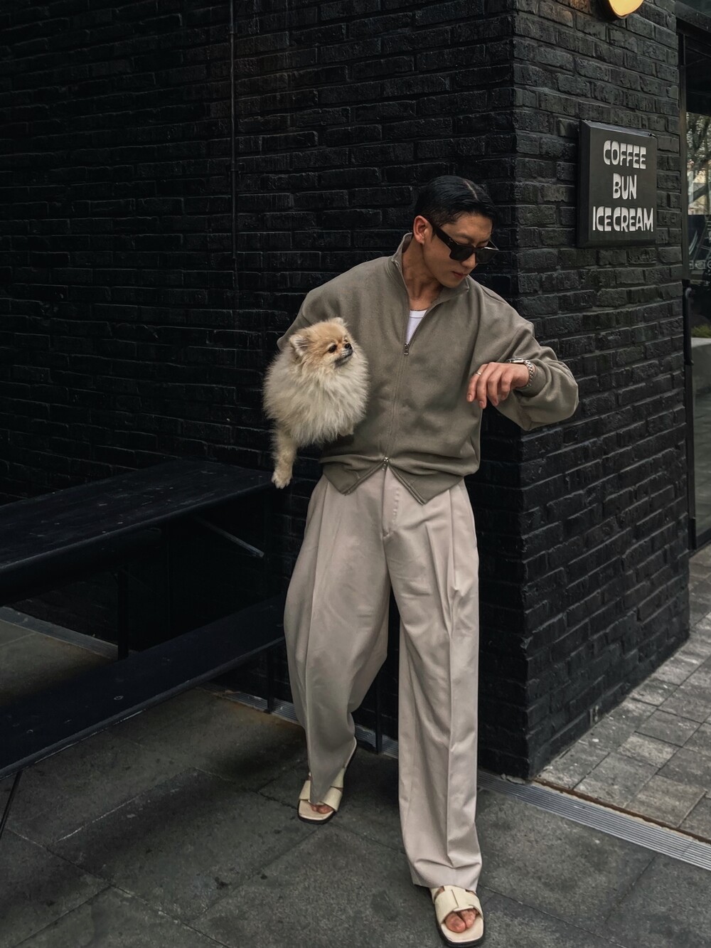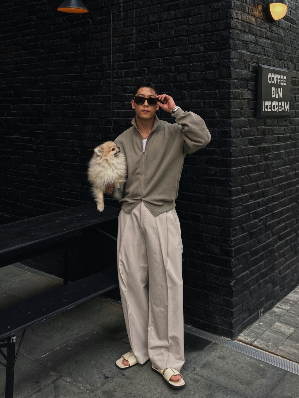 - 와플 원단의 고급스러운 심플한 집업 자켓